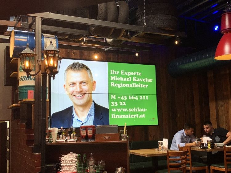 Videowall im zentralen Bereich der Bar + 2 Bildschirme im Wintergarten