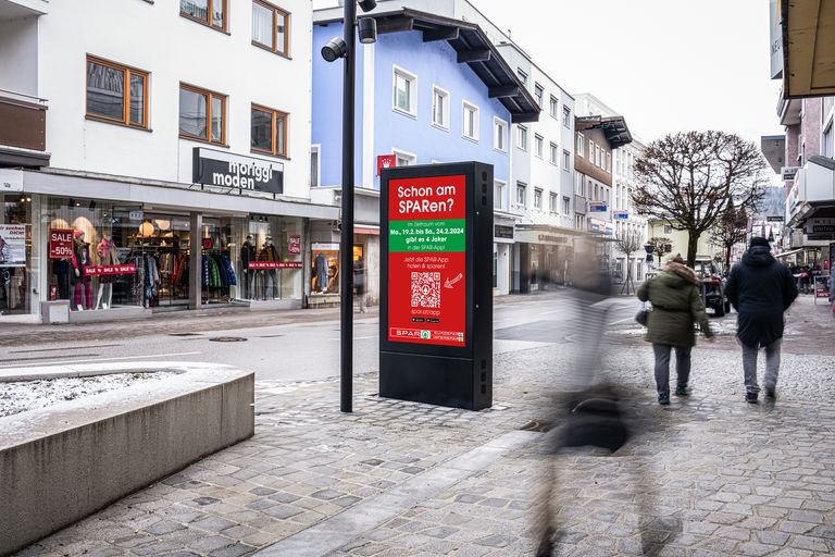 Da SPAR mit diesem Angebot neue digitale Wege in der Kundenkommunikation geht, ist es naheliegend, auch bei der Bewerbung der APP auf digitale Kanäle zu setzen. Wir freuen uns sehr, dass SPAR deshalb in Tirol und Salzburg zuletzt eine Kampagne auf mehr als 33 City Screens von monitorwerbung gebucht hat. In wenigen Tagen (Laufzeit von 19. – 24. Februar) konnten beachtliche 71.578 Ausspielungen* erzielt werden.